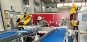 Double banderoleuse avec deux robots